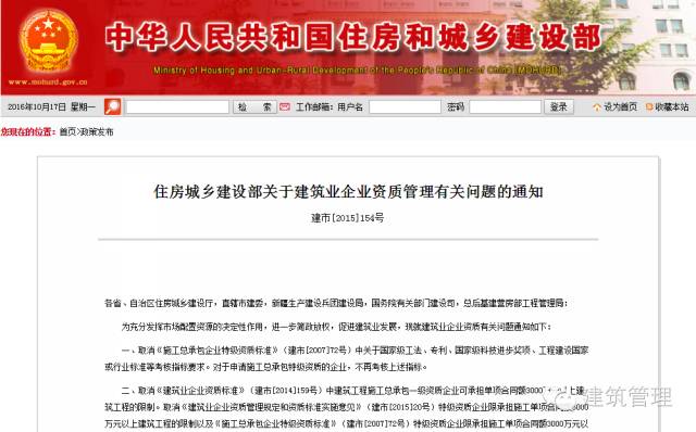為充分發(fā)揮市場配置資源的決定性作用,進(jìn)一步簡政放權(quán),促進(jìn)建筑業(yè)發(fā)展,2015年10月9日,住房和城鄉(xiāng)建設(shè)部印發(fā)《關(guān)于建筑業(yè)企業(yè)資質(zhì)管理有關(guān)問題的通知》(建市[2015]154號(hào)),取消《施工總承包企業(yè)特級(jí)資質(zhì)標(biāo)準(zhǔn)》(建市[2007]72號(hào))中關(guān)于國家級(jí)工法、專利、國家級(jí)科技進(jìn)步獎(jiǎng)項(xiàng)、工程建設(shè)國家或行業(yè)標(biāo)準(zhǔn)等考核指標(biāo)要求。對(duì)于申請(qǐng)施工總承包特級(jí)資質(zhì)的企業(yè),不再考核上述指標(biāo)。