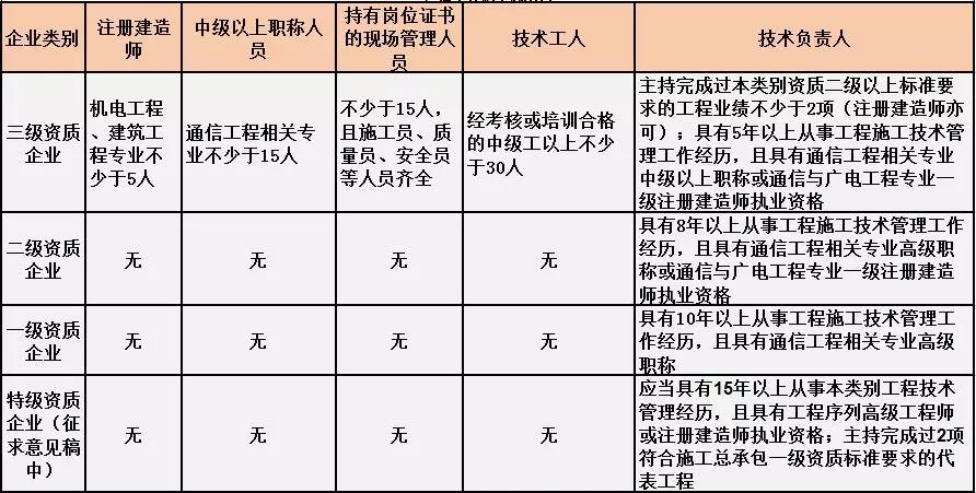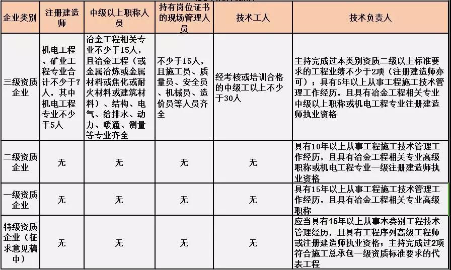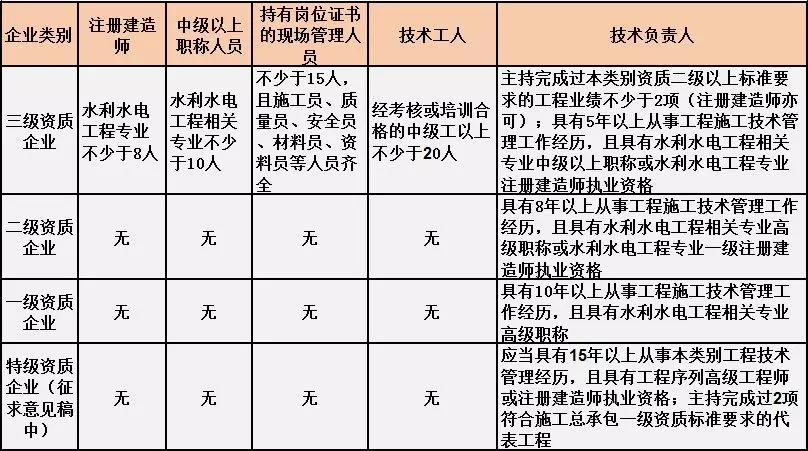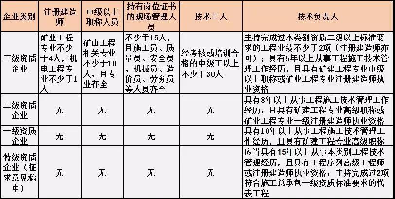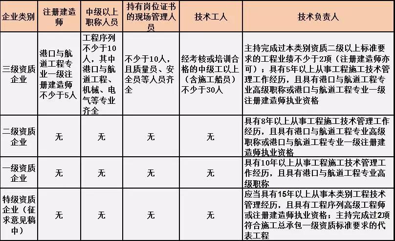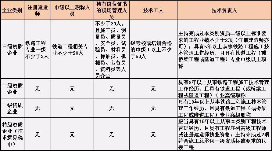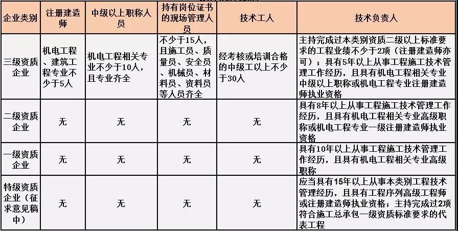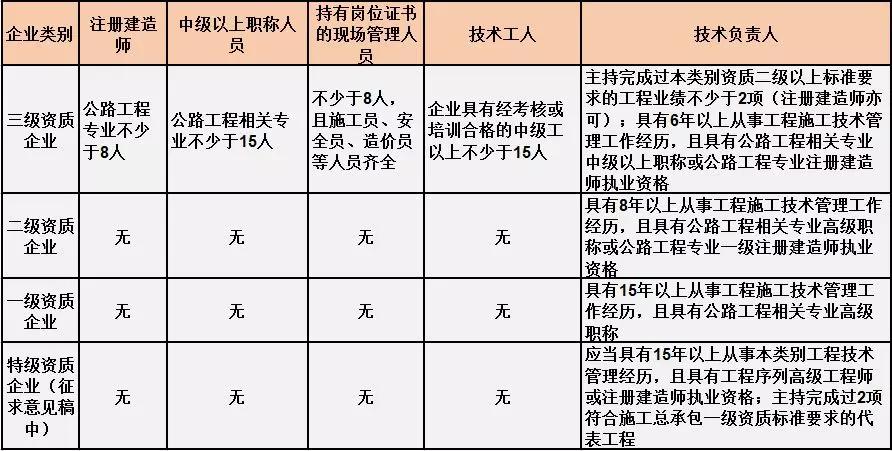 換句話說,并不是所有企業(yè)資質(zhì)都不要求有建造師等企業(yè)人員。施工總承包三級資質(zhì)企業(yè)對建造師等人員仍有要求,一級資質(zhì)、二級資質(zhì)企業(yè)保留技術(shù)負(fù)責(zé)人這一項要求,特級資質(zhì)另有規(guī)定。